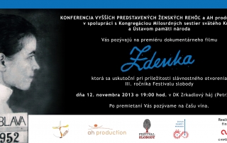 You’re invited to the premiere of the film Zdenka , showing on the occasion of the opening of the III. Annual Freedom Festival on November 12, 2013 at 19:00 at DK Zrkadlový háj.